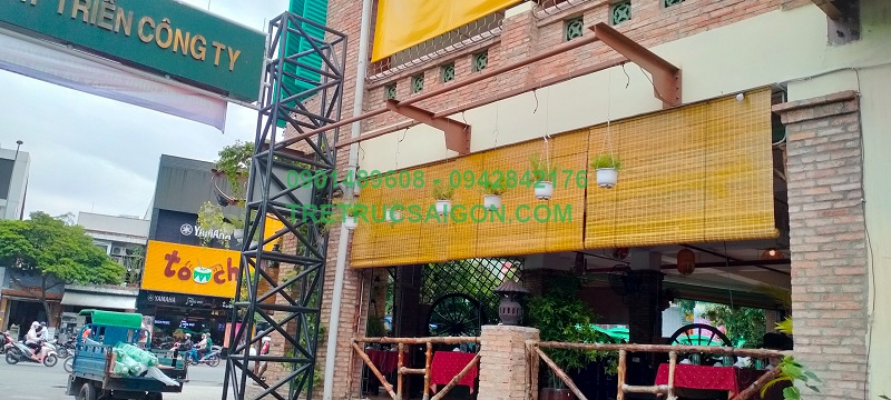 Tháng 09/2022 Tre Trúc Sài Gòn vừa thi công lắp đặt mành tre, mành tre màu vàng tự nhiên cho khách hành là nhà hàng Ẩm Thực Quê Nhà của mình tại quận Gò Vấp. Mành tre được khách hàng chọn là mẫu mành tre khá tốt của Công ty và cũng là sản phẩm bán chạy nhất hiện nay. Mành tre được lắp đặt tại khu vực tầng trệt giúp tôn lên vẻ đẹp, che nắng mưa và làm tôn lên vẻ sang trọng của không gian khách hàng chọn. Đơn hàng được tiến hàng khảo sát, tư vấn, và thi công hoàn công trong khoảng 2 ngày.