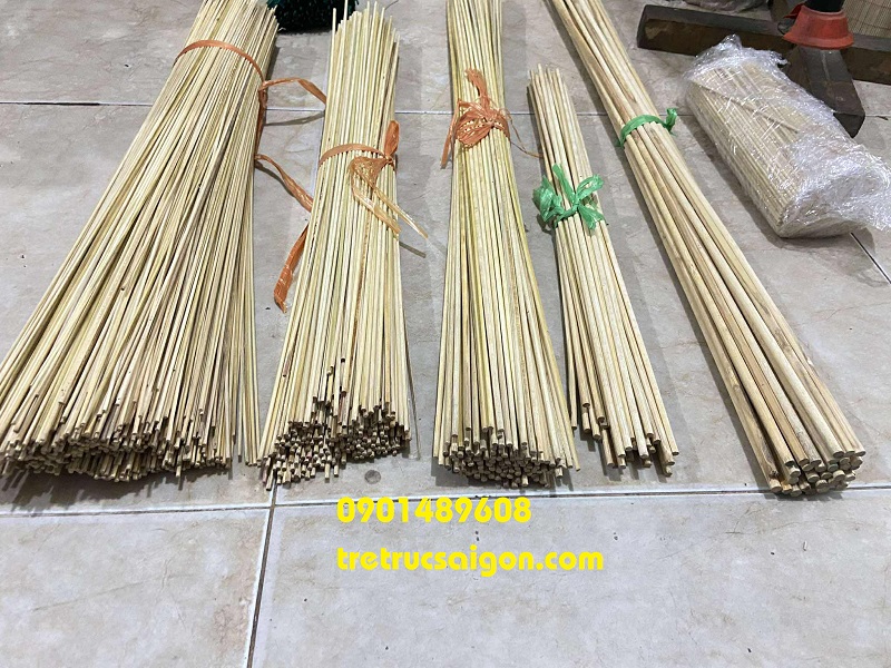 - Cắm hoa – trang trí: Dùng làm que cắm cố định hoa trong bình hoặc trong các giỏ hoa.Làm xiên thực phẩm: Que tre được vót nhọn để làm que xiên thịt, cá, rau củ nướng.Làm đũa dùng 1 lần: Được sử dụng nhiều trong quán ăn, tiệc tùng.Làm tăm tre: Loại nhỏ để vệ sinh răng hoặc dùng trong nấu ăn (xiên thử độ chín).Làm que tre nan tre làm đèn lồng trung thu