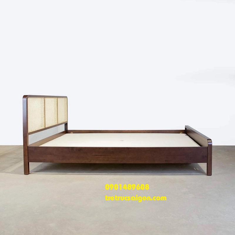 Giường gỗ mây tre mắt cáo.