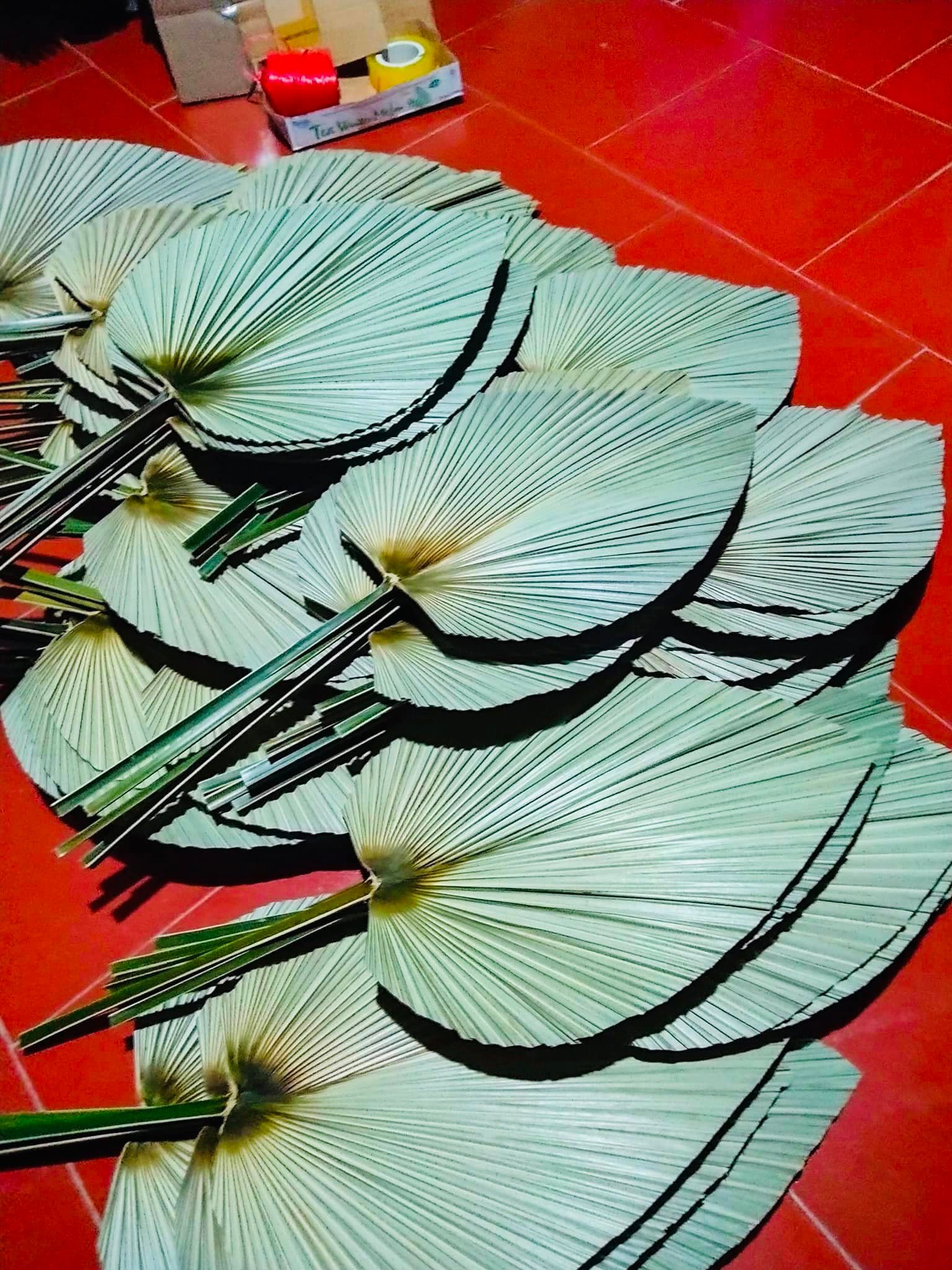 Kích thước lá cọ: Tàu lá : Dài 40 cm tới 50cm bản lá :Rộng (20-25) x Dài (25-35)