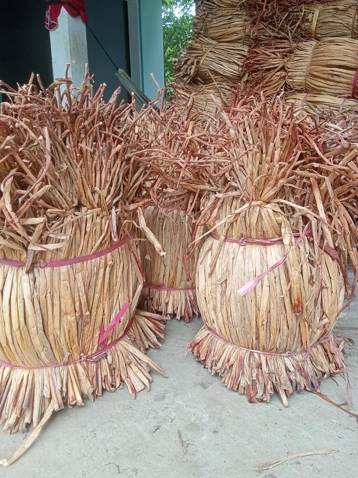 Đem phơi khô cây lục bình dưới ánh nắng để loại bỏ độ ẩm và tăng tính dẻo dai, giúp bảo quản được lâu hơn.